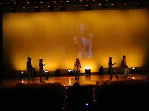 礼堂里霓虹闪烁彩球飘飘,到处洋溢着笑声。7:00随着四位主持人的闪亮登场礼堂里霎时静了下来,随即观众席上爆发出一阵热烈的掌声。晚会正式开始了。