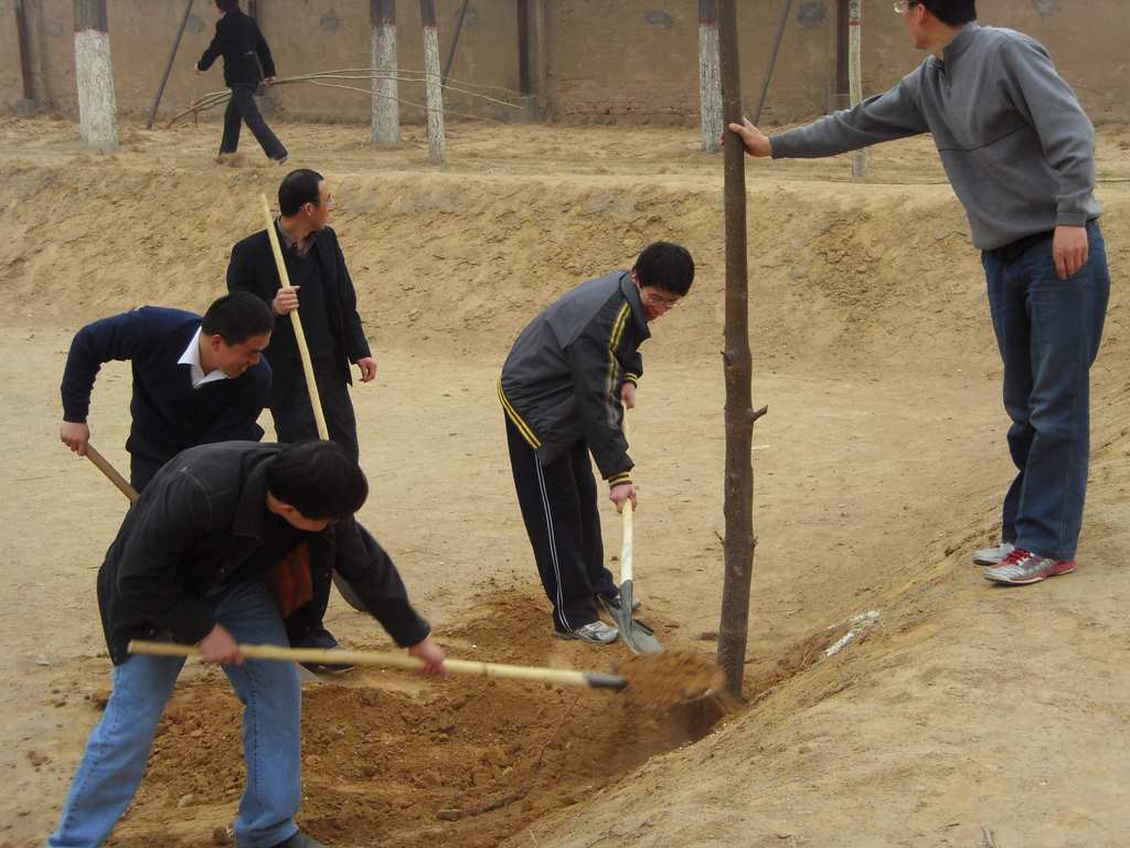 一到现场,大家便根据自带的工具自由组合,你挖坑来我栽树,你培土来我浇水,老师们一个个干劲十足、热情似火,配合默契,一会儿工夫树苗便栽种整齐了。此次植树活动在美化了公司校园环境的同时也提高了广大教师的环保意识.