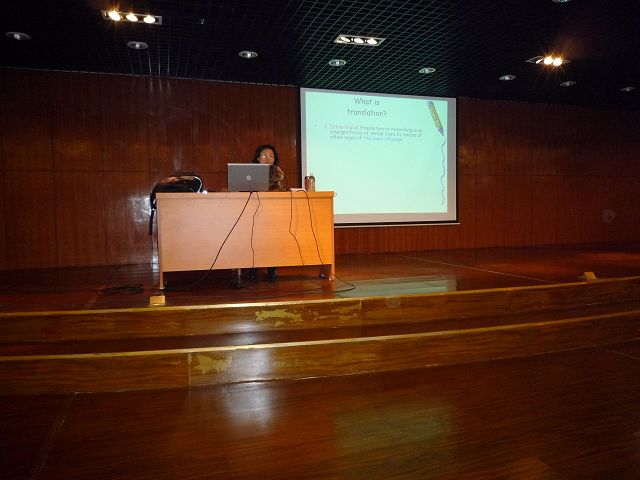 3月12日晚7:00,讲座在外语大楼二楼多功能报告厅举行,此次讲座主讲系赵文静,毕业于英语曼彻斯特大学,师从国际著名翻译理论家Mona Baker教授,代表性专著《翻译的文化操控》一书获2007年河南省哲学社会科学优秀成果奖,在海内外产生极大影响。公外部的主任和老师也参加了此次讲座。