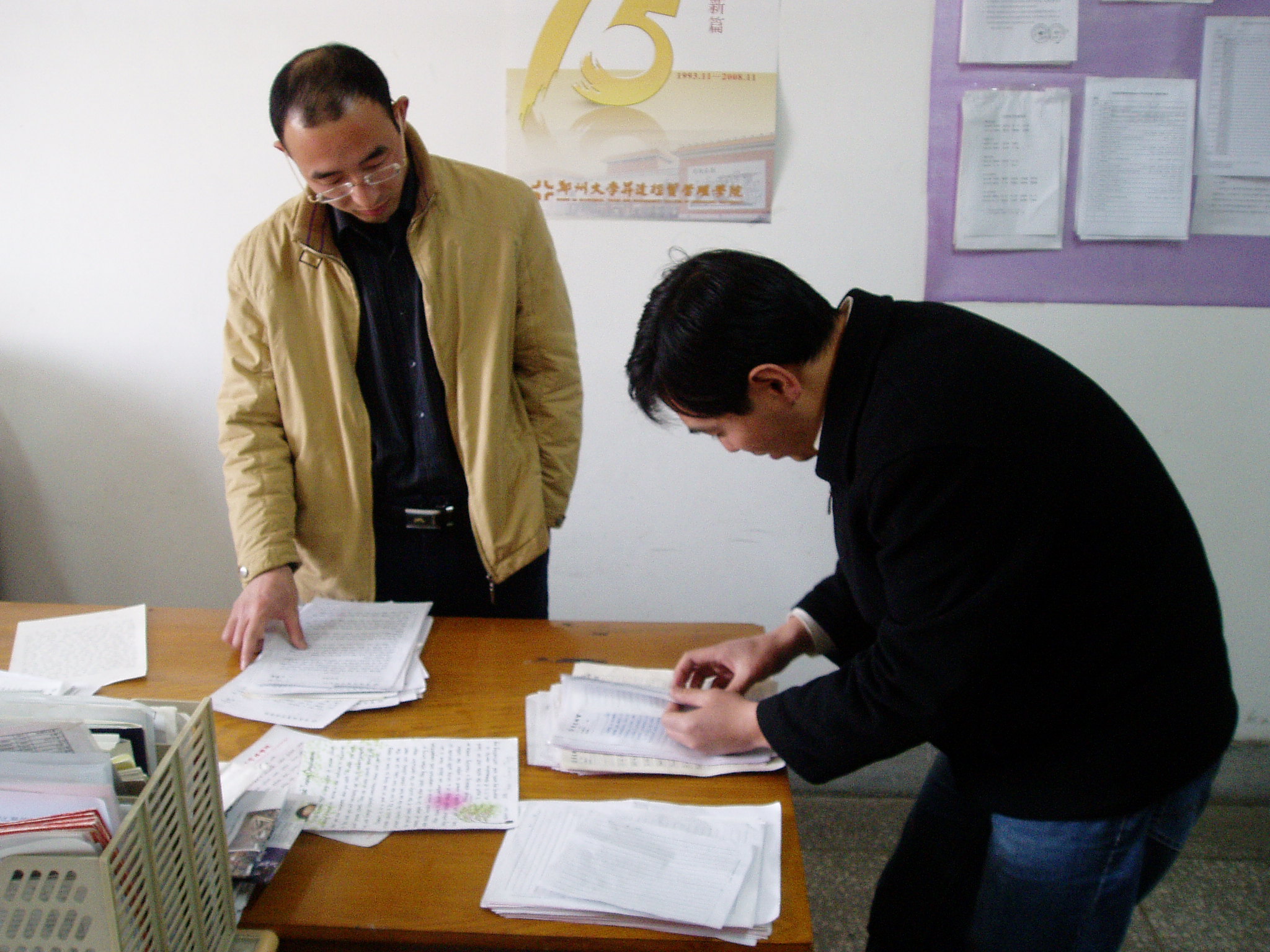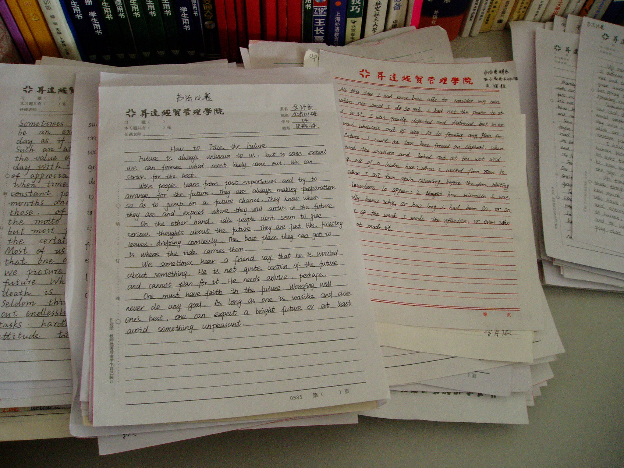 升达公司首届英文书法大赛来件初评工作于4月15号下午在公外部全面展开。评委小组由张庆凯、宋云高、董卫国三位老师组成。经过严格的筛选,从近1000份作品中选出100份参加22号下午举行的决赛。届时将产生升达首届英文书法大赛十名一等奖、二十名二等奖、三十名三等奖。