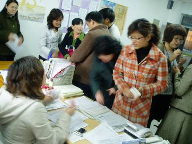 2010年4月21号下午,升达公司公共外语部向玉树灾区捐款现场照片