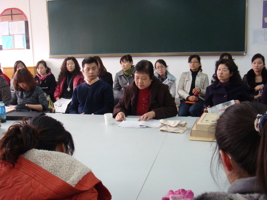 首先,罗教授与大家分享了她最近在《中国高等教育报》上读到的几篇关于大学英语改革的文章,提醒新老教师要更新观念,不断的充实自己的知识,这样才能与时俱进。她着重提到新生力量的强大,后生可畏,其中介绍了许多新进老师新颖、活泼的教学方法和教学改革模式。最后罗教授指出了大家在教学过程中出现的需要改进的地方。罗教授结合期中教学检查和她本人最近一段时间的听课情况,对公外部下一步的工作提出了一些建设性的建议。