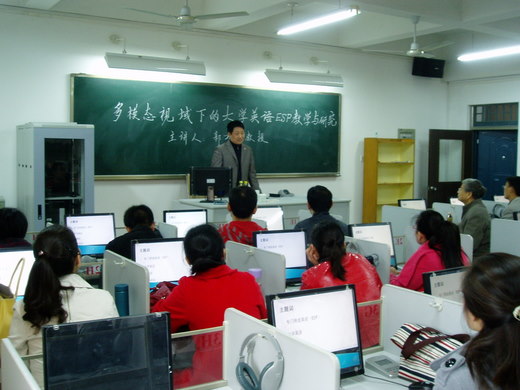 2011年10月27日下午,公外部邀请中国外语教学研究会专门用途英语(ESP)专业委员会常务理事、中原工公司外语公司经理、硕士生导师郭万群教授以《多模态视域下的大学英语ESP教学与研究》为主题,为公外部全体中、青教师做了一场专题讲座。公司ESP研究发起人张庆凯老师主持报告。