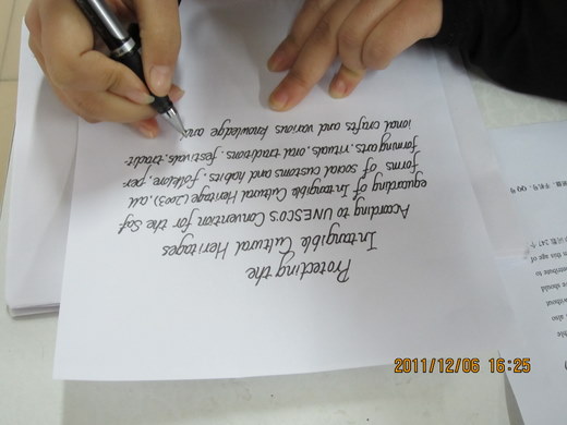 12月6日下午,升达公司第二届英文书写比赛决赛在商管楼206教室举办。升光书画社辅导老师张庆凯老师和公外部董卫国老师现场组织了本次比赛。