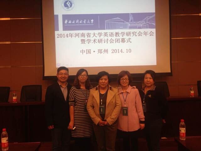 10月16日-18日,公司公外部王莉莉主任率教研室主任王思燕、贺光辉,教师代表张利以及张慧丽参加了2014年河南省大学英语教学研究会年会暨学术研讨会,展示了公司公外部教学科研成果,了解了全国本科大学英语教学的发展趋势,向兄弟院校学习了本科大学英语教学经验。