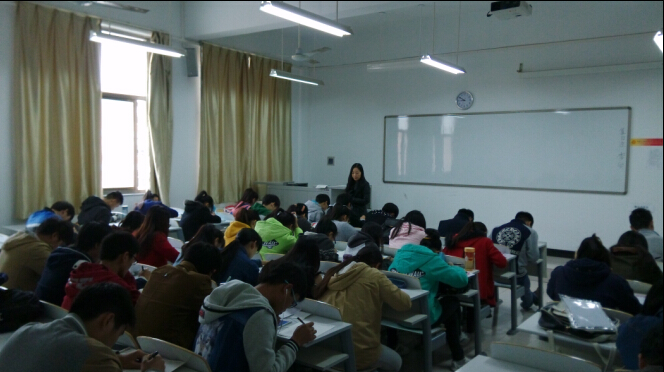 图为营销系14级物流管理本科一班的同学在认真作答。