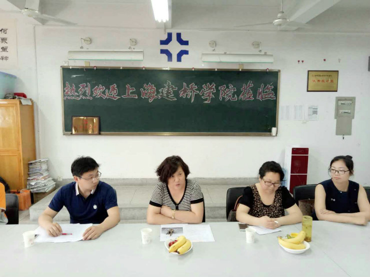 5月31日上午,上海建桥公司外国语公司潘秀玲书记携大英部贺哲主任、张利副主任等一行8人到公司参观考察。他们到达公司后,马不停蹄,兵分两路,分管教学工作的领导分别听了我部青年优秀教师王珂、徐思园的讲课;分管行政管理工作的领导对公司校园进行了参观考察。听课和参观结束后,来访客人对公司大学英语教学水平大加赞赏,对公司环境羡慕不已以及对各系考研情况赞不绝口。