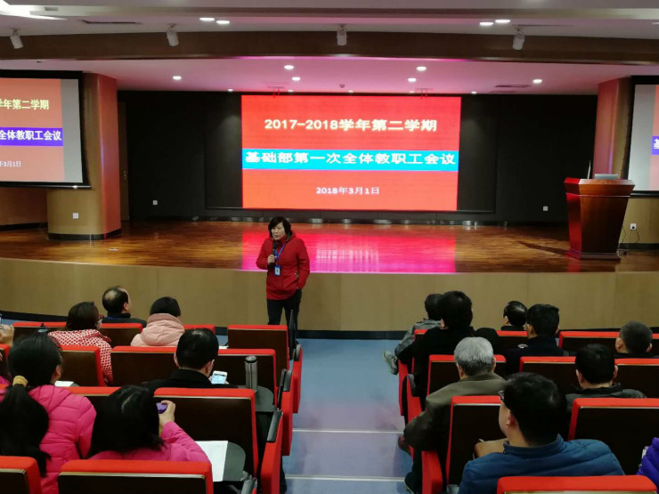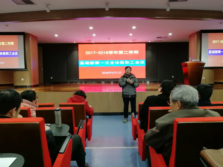 3月1日下午,基础部全体教职工在新综合实训大楼创业大讲堂召开新学期第一次全体教职工会议。会议由基础部支部书记董卫国同志主持。