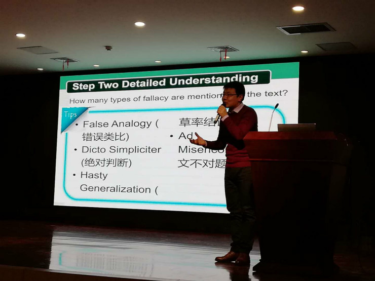 首先,董卫国同志代表基础部党政班子向全体教职工及家人拜年,并送去元宵佳节的祝福。第二个环节是新学期第一节课展示与观摩。为保证每学期第一周上课状态与质量,保证师生从假期到学习的平稳稳妥过渡,按照基础部惯例,每学期期初,都要选拔一批骨干教师代表进行学期第一次课的展示。本学期选拔的主讲老师分别是大学英语第二教研室主任贺光辉老师、听说课精彩一课获奖教师屠瑞芳老师、数学教研室主任时文俊老师。三位教师精心的备课、优雅的谈吐、科学合理的课堂互动,让全体与会教师受益匪浅。数学教授们全英语参与英语课堂的互动环节和新聘数学专职教授的对大家全英文问候更是让大家惊叹不已。