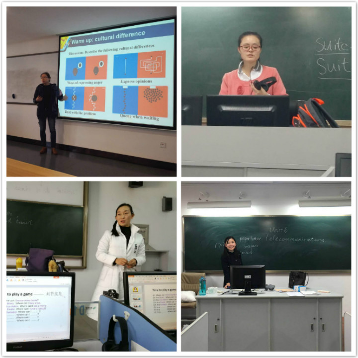 基础部大学英语第一教研室为提升教学水平,磨炼教学技巧,自2018年3月22日起,共组织了三次磨课观摩活动。3月22日,在综合实训大楼B座203教室,由张慧丽、聂思成和张庆凯老师主讲,第一教研室全体专职教师参加,进行了第一次磨课示范观摩活动。3月26日-3月30日,分别在综合实训大楼B座304、402、403和404教室分小组进行了第一教研室全体专职教师的磨课活动。4月7日,在综合实训大楼B座304、303、404和503教室进行了第一教研室全体专职教师的集中磨课活动,胡克莉、聂思成、张庆凯、董卫国、阮芳、徐喜梅、王新平、韩玉倩主讲。