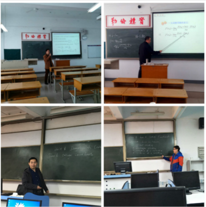 4月7日,上午10:00-12:00,在自勉堂201、202、208、209教室,数学教研室全体教师分课程组同时进行磨课教学。这是数学教研室第二轮磨课。本次磨课分微积分、高等数学、概率论与数理统计和线性代数四门课程进行磨课教学,分别有四位经验丰富的教授、博士进行模范教学,其他课程组成员观摩学习讨论交流;其中微积分由魏保军博士、概率统计由严广松教授、线性代数由刘如玉教授、高等数学由刘广彦教授分别进行课堂教学进行磨课,四位教授精彩的教学,教学内容、教学设计、教学方法以及PPT制作等方面都丰富多彩,使青年教师开了眼界,学习到了很多。