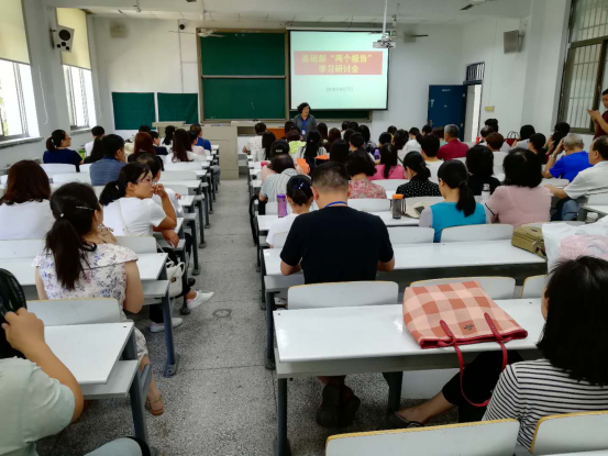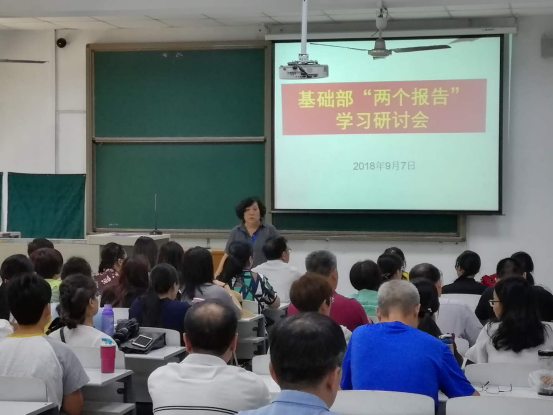 基础部召开两个报告和王淑芳董事长新学期讲话学习研讨会