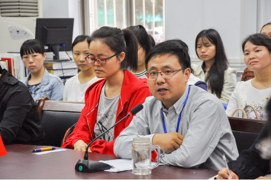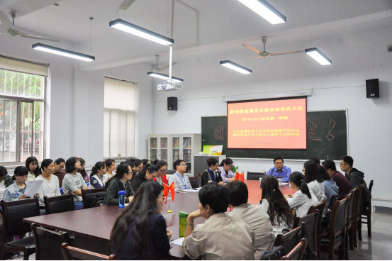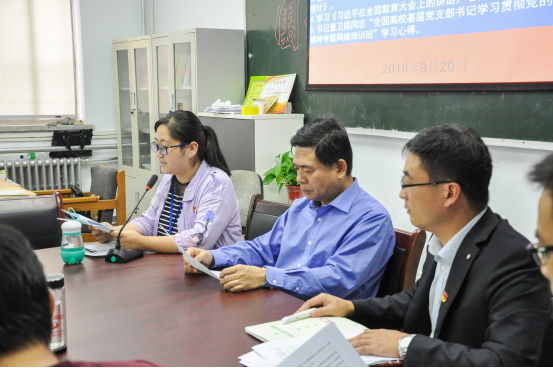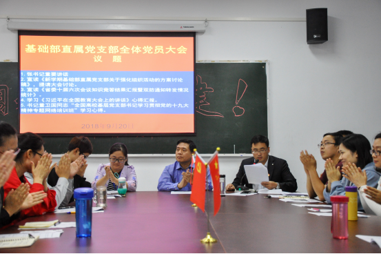 大会下发并宣读《新学期基础部直属党支部关于强化组织活动的方案讨论稿》,提请大会讨论;宣读了暑假进行的省委十届六次会议知识竞答《省委十届六次会议知识竞答结果汇报》;随机抽取组织党员同志们分享《习近平在全国教育大会上的讲话》学习心得,董卫国同志、权宇同志、吴婷同志、朱明元同志、高颖同志、刘银萍同志、贺光辉同志先后发言;书记董卫国同志宣布了自己参加“全国高校基层党支部书记学习贯彻党的十九大精神专题网络培训班”的学习成果。