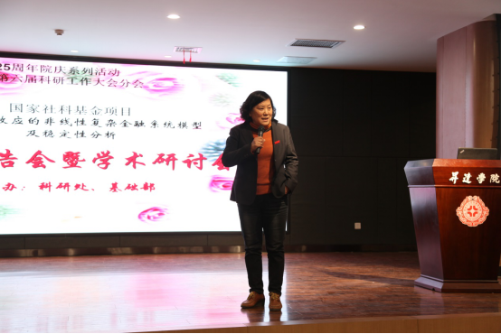 会议伊始,常务副董事长崔慕岳教授发表讲话。他说,由蔡国梁教授及其团队获批的国家社科基金项目《基于蝴蝶效应的非线性复杂金融系统模型及稳定性分析》,是公司取得的一项重大科研成果。国家社科基金项目河南省今年有23所高校共获得141项项目立项,公司是河南省唯一获批立项的民办高校,是公司继2013年度获批《欧债危机的政治经济学分析研究》之后的又一项国家级科研项目,代表公司特向基础部应用数学研究所蔡国梁教授及其团队表示热烈祝贺!