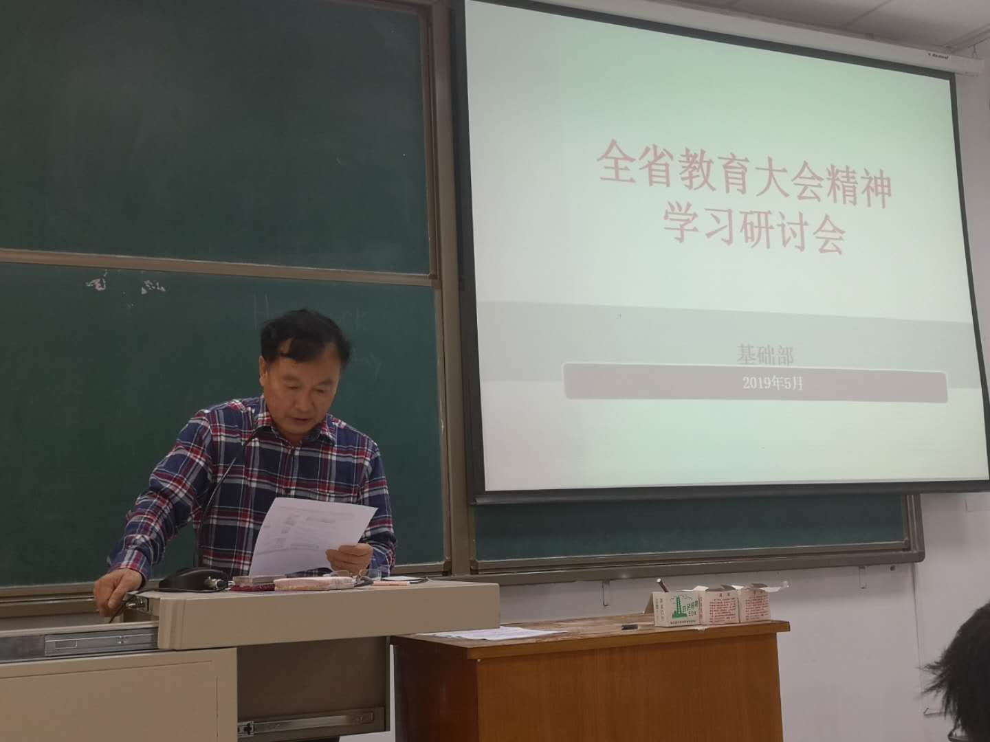 5月16日下午14:30-16:30基础部在综221召开了学习贯彻“全省教育大会”和“河南省高等公司本科教育工作会议”精神的全体教师会议,会议由贺光辉老师主持,王莉莉主任和焦争鸣主任以及基础部全体教师参加了此次会议。