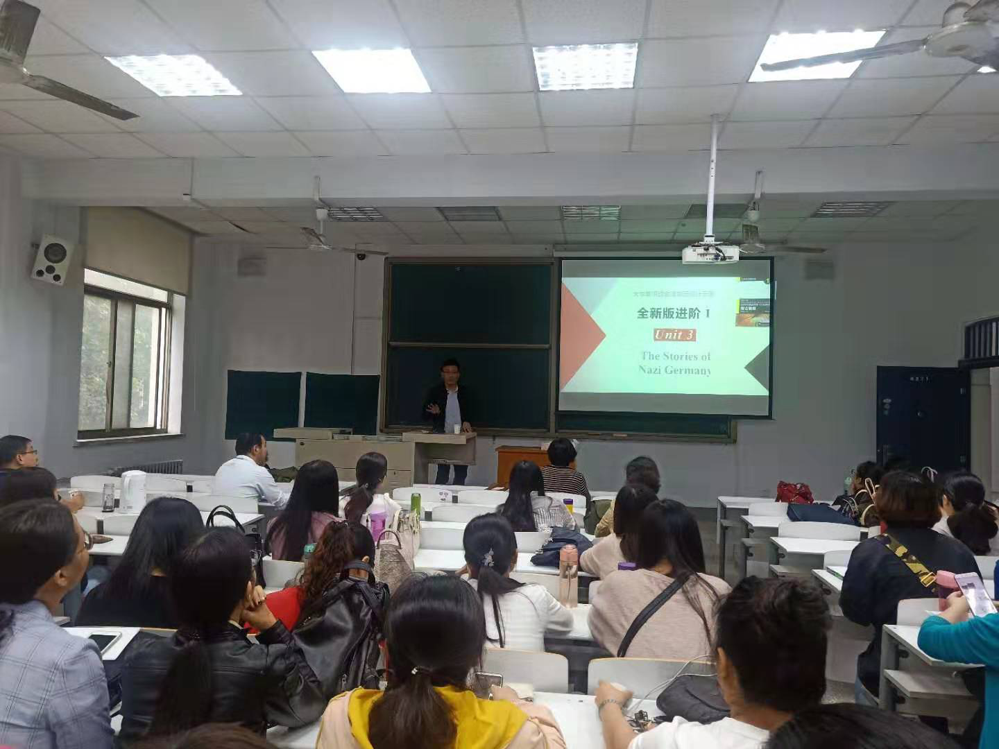 冯豫博士以《全新版进阶大学英语》第一册Unit3为案例,分别对该单元第一次、第二次和第三次课做了详尽的课程设计师范。基于教材,深化教材,升华教材,冯博士的课程设计科学严谨,对大学英语教学改革具有现实的指导意义。与会老师均表示受益良多。