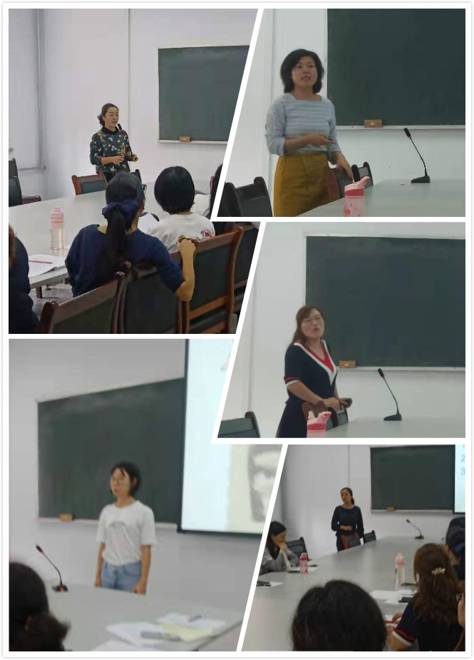 然后,刘昕子、王新平、牛丽娜和葛静懿四位老师针对“如何上好新生第一课”和“怎样开展混合式教学”等两个讨论话题进行了主题发言,发言内容条理清晰,内容充实,并配有PPT进行讲解和示范。