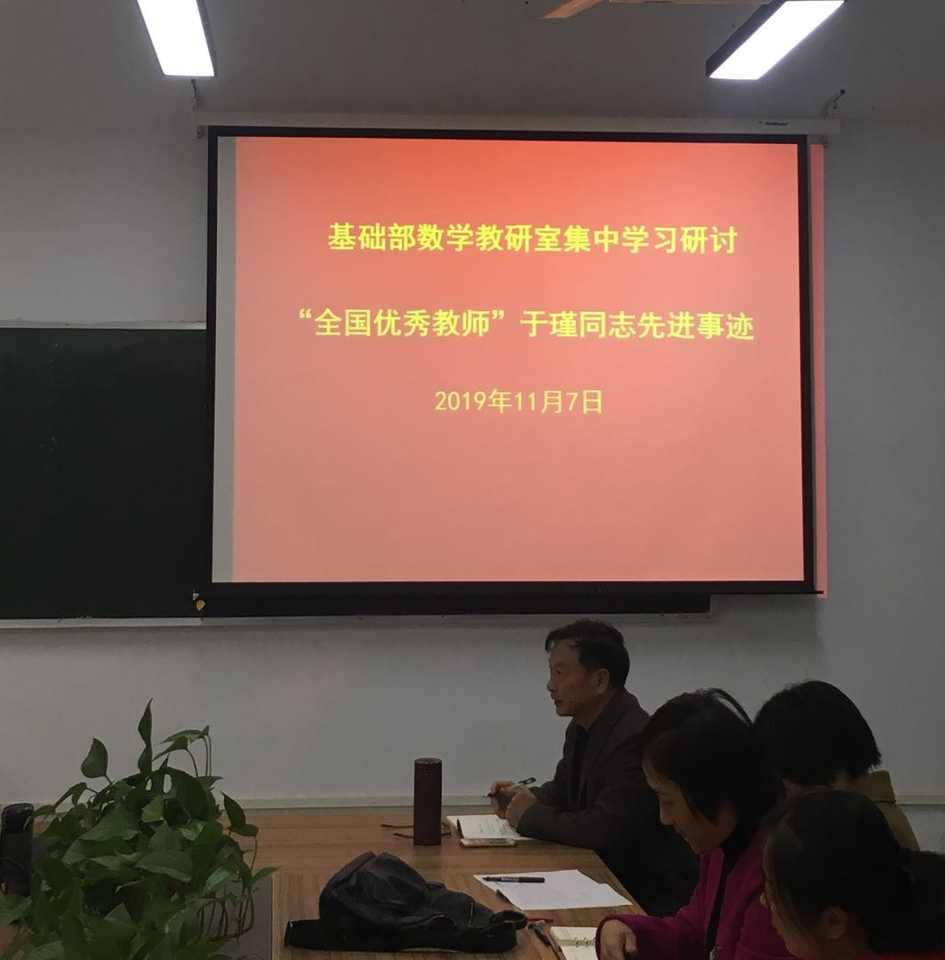 11月7日下午,数学教研室全体教师在综合楼115集中整治学习,本次学习主题为学习《教育部关于追授于瑾同志“全国优秀教师”荣誉称号的决定》。