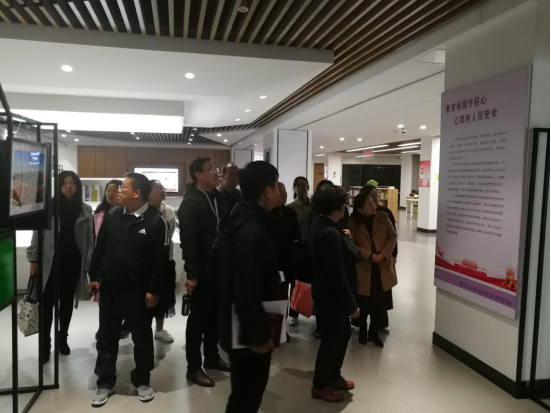 11月14日下午,在综合实训大楼A座,基础部直属党支部组织参观新郑市新的社会阶层人士统战工作理论研究与人才培养中心研究成果展、民主党派无党派人士党外知识分子书画摄影作品展。基础部主任王莉莉教授,直属党支部书记张志银同志及基础部党外知识分子代表、新的社会阶层人士代表、民主党派代表一行20人参加了本次参观活动,此次参观活动由直属党支部委员、组织员王森源老师讲解。