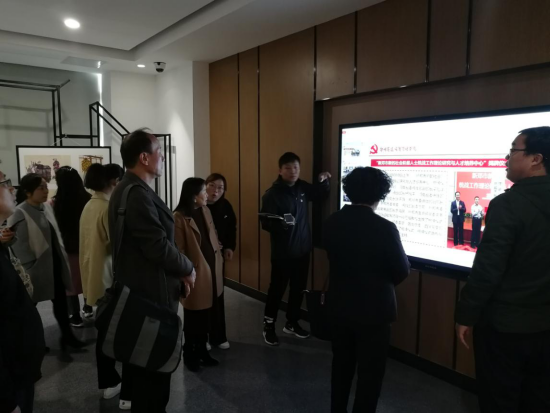 老师们先后参观了公司教育报国守初心,立德树人担使命主题书画摄影展,新的社会阶层人士优秀事迹展播区,新的社会阶层人士联络办公室,参观了新郑市新的社会阶层人士代表、民主党派、无党派人士代表、党外知识分子人物风彩录,翻阅统战成果汇编;随后,参观了员工墙、新郑市新的社会阶层人士统战工作理论研究成果展和研究中心办公室。
