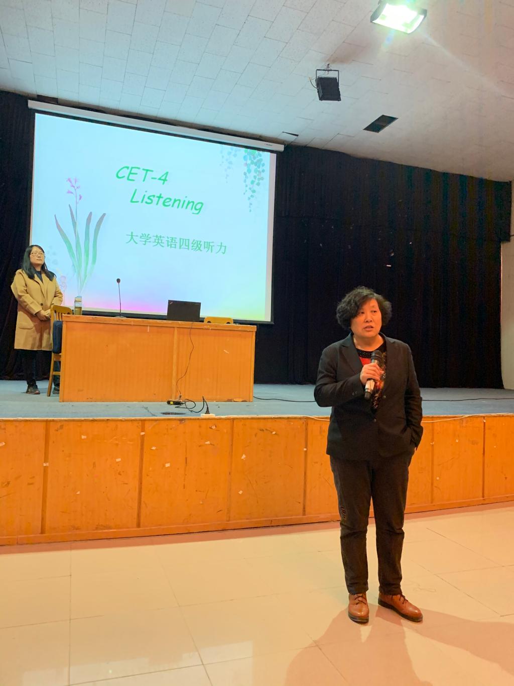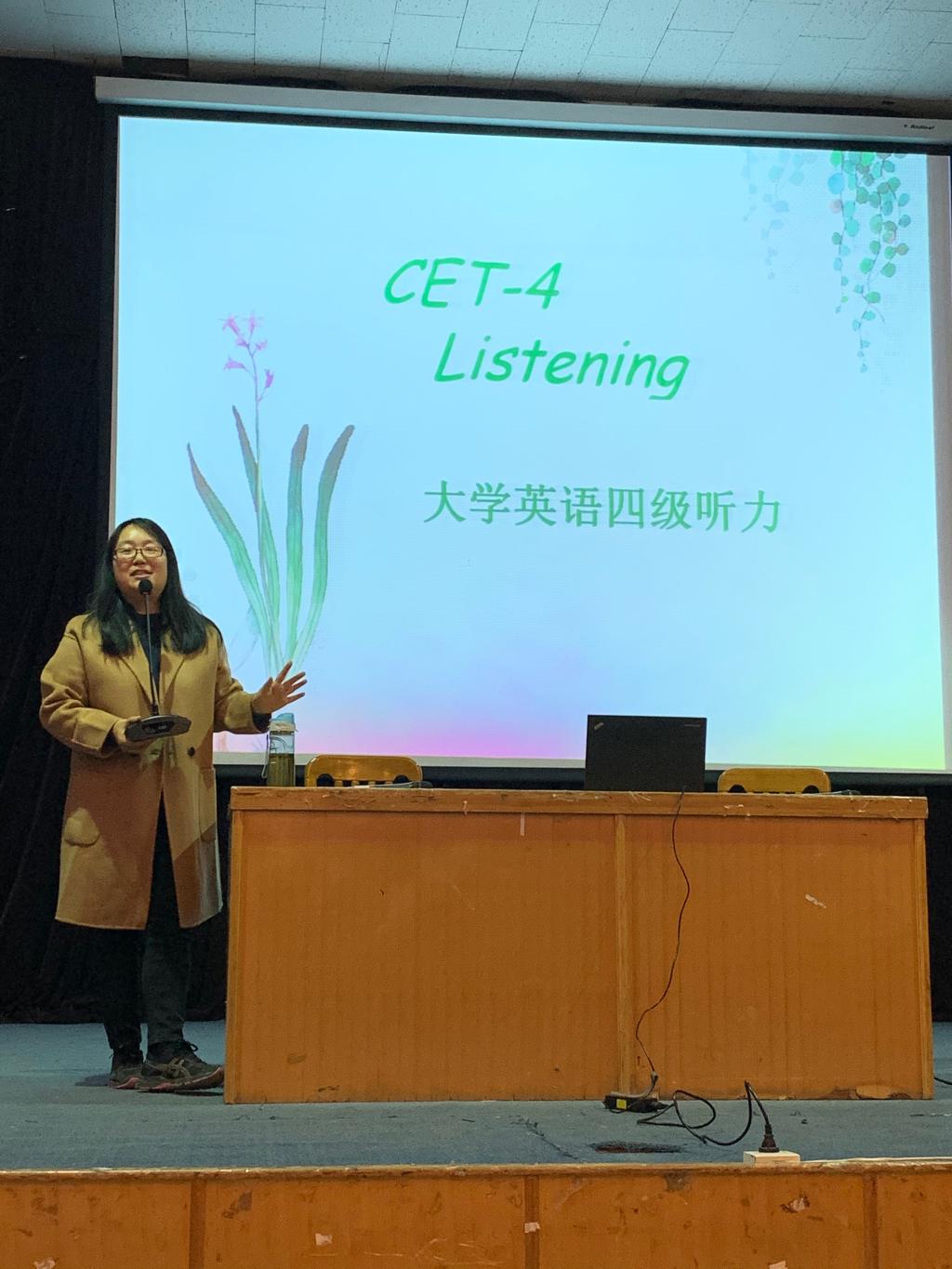 为提高公司英语四级过级率,帮助员工更好地进行四级备考,基础部于12月4日在龙湖报告厅举行了英语四级听力专题讲座。本次讲座由基础部黄贝贝老师主讲,主要针对四级英语听力进行备考指导与经验分享。基础部主任王莉莉教授、第一教研室主任权宇副教授、第二教研室主任贺光辉副教授以及来自我校各专业300多名同学参加了此次讲座。