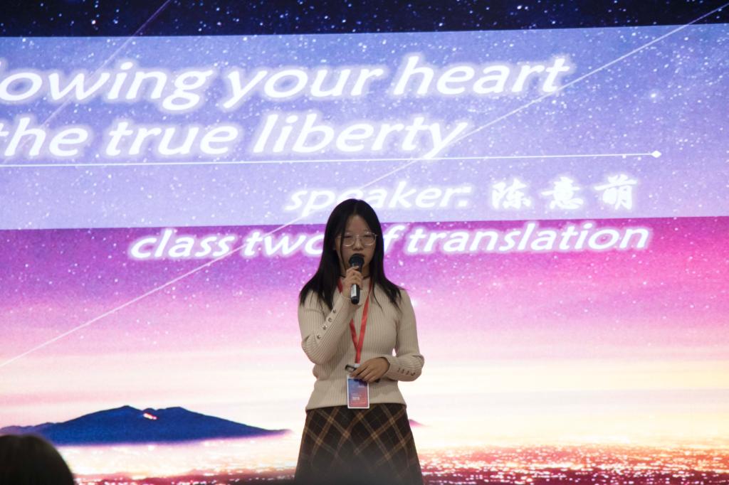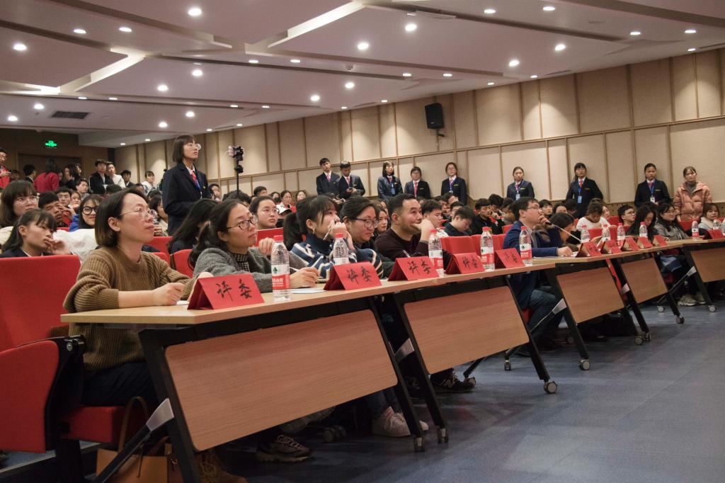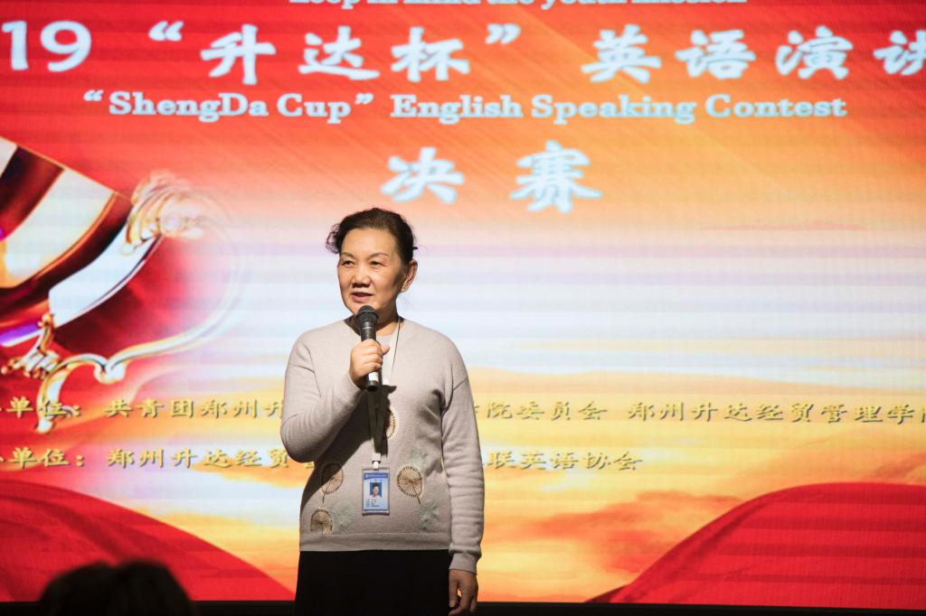 12月5日下午2:30,由校团委、基础部主办,英语协会承办的“升达杯”英语演讲比赛决赛在综合实训A楼的双创大讲堂举行。本次演讲比赛以“爱国、诚信、友善、自由、平等”为主题。基础部主任王莉莉教授、金贸公司经理何伟教授、管理公司经理纪德尚教授、商公司经理孙卫东教授、外语公司经理张梦教授、教务处赵晶副处长、图书馆王佳主任、校团委孔靖雯老师出席本次演讲比赛决赛的现场。基础部第一教研室主任权宇副教授、基础部第二教研室主任贺光辉副教授、基础部第三教研室主任宋玮副教授、基础部大赛组委会主任张庆凯副教授、全国第十届讲课大赛获奖者高颖副教授、基础部青年教师单莹老师担任本次比赛的评委。
