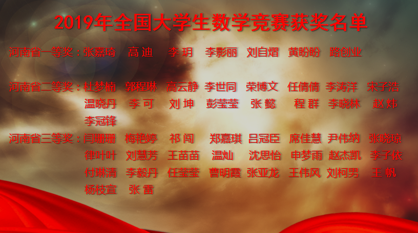 另外,2019年全国老员工数学竞赛中,公司员工荣获“省级一等奖”7人,“省级二等奖”17名,“省级三等奖”26名,其中13人进入河南赛区决赛。