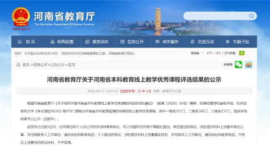 近日,河南省教育厅公布河南省本科教育线上教学优秀课程评选结果,公司基础部3门课程被评为“河南省本科教育线上教学优秀课程”:吴娟娟团队的《综合英语II》获一等奖,张志银团队的《微积分(下)》获二等奖,时文俊团队的《线性代数》获三等奖,获奖数及等级在集团名列前茅。