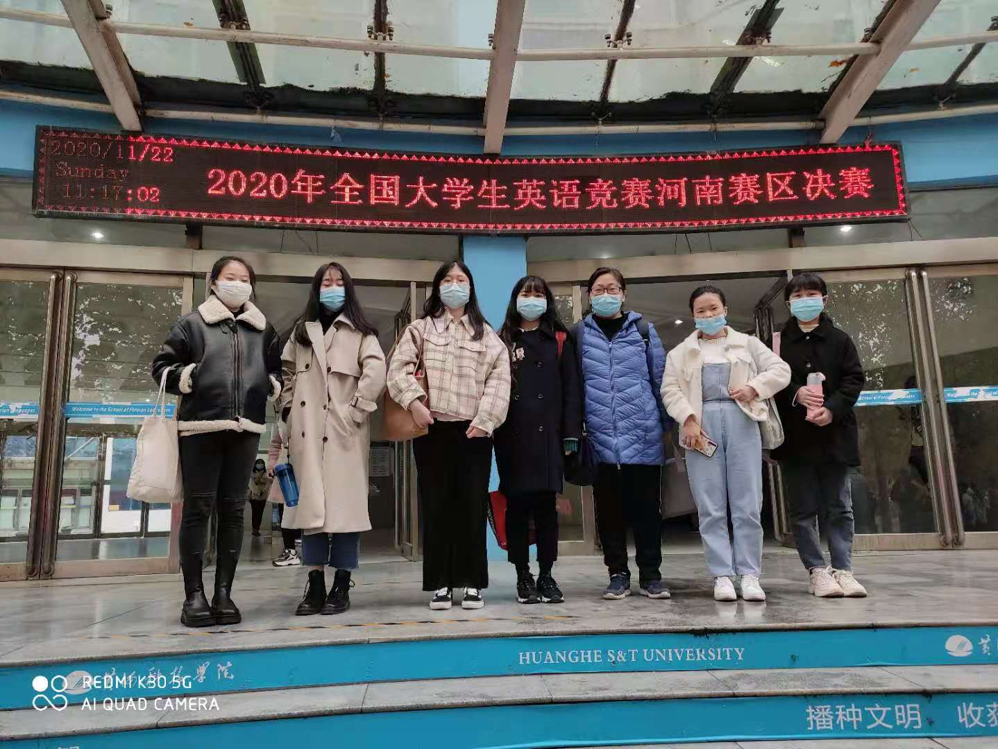 11月21日,在基础部张庆凯、权宇老师的带领下,一行8人踏上了赴黄河科技公司参赛的旅程。临行前,王莉莉主任和焦争鸣主任再三叮嘱一定要做好后勤保障和服务工作,保证同学们的人身安全与饮食安全,确保员工们顺利地参加决赛。