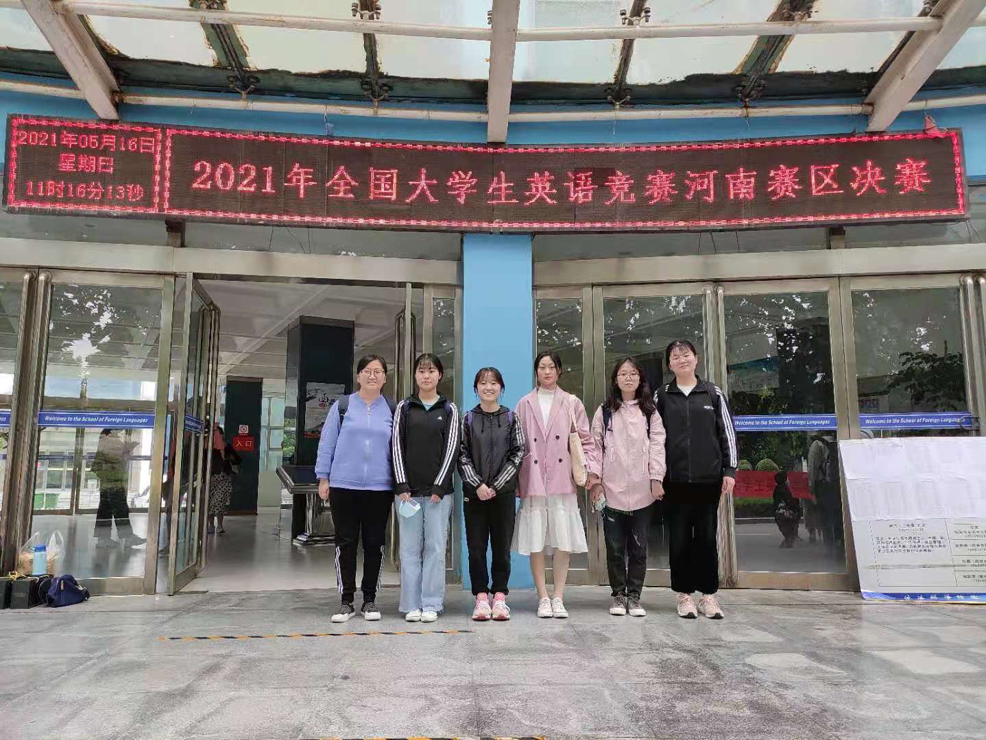 5月15日,在基础部张庆凯、权宇教师的带领下,一行7人踏上了赴黄河科技公司参赛的旅程。临行前,王莉莉主任和焦争鸣主任再三叮嘱一定要做好后勤保障和服务工作,保证同学们的人身安全与饮食安全,确保员工们顺利地参加决赛。