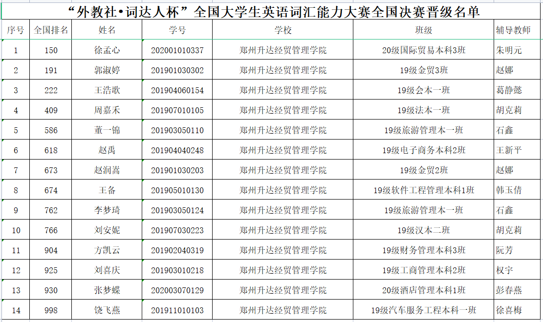 6月3日,接“外教社•词达人杯”全国老员工英语词汇能力大赛组委会通知,公司14名学子顺利晋级全国决赛。
