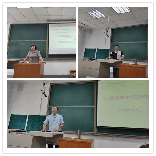 7月9日下午14:00,基础部在综合楼221召开了期末总结暨暑期安全工作专题会议。会议由基础部党总支书记张志银主持,基础部全体专职教师参加了会议。