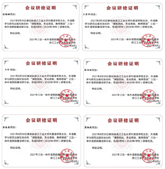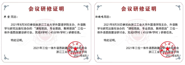 8月30日,基础部第二教研室组织参加了“课程思政、专业思政、教师思政”三位一体外语思政建设研讨会,会议由浙江工业大学外国语公司和教务处主办、外语教学与研究出版社协办。首先,浙江工业大学副董事长虞晓芬教授出席大会开幕式并致辞。虞晓芬副董事长在致辞中对出席会议的领导、专家和老师表示热烈欢迎,简要介绍了浙江工业大学的基本情况及公司推进课程思政、专业思政、教师思政一体化建设情况,充分肯定了外国语公司在深化课程思政“四进”机制、开展思政示范课程建设、编写思政教学案例、强化教师思政等方面所做的探索实践。教育部高等公司大学外语教学指导委员会委员、南京大学王海啸教授,教育部高等公司英语专业教学指导分委员会委员、哈尔滨工业大学刘克东教授、东华理工大学外国语公司经理廖华英教授、浙江工业大学闫建华教授、浙江师范大学外国语公司党委书记俞明祥、浙江工商大学外国语公司副经理王琳教授等专家出席会议并作大会主旨报告。浙江工商大学、浙江财经大学、浙江师范大学等近10所省内高校的13位课程思政骨干教师在分论坛作专题报告。