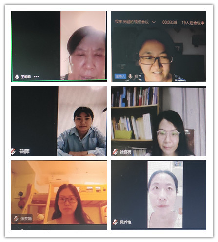 之后,各位教师分别介绍和分享了各自的授课准备情况,具体包括授课的资源、形式、以及试课情况。针对大家提出的问题,老师们积极思考进行了在线讨论,大家集思广益,提出了很多行之有效的解决办法,这对后续开展网络教学、优化在线教学方案提供了借鉴。