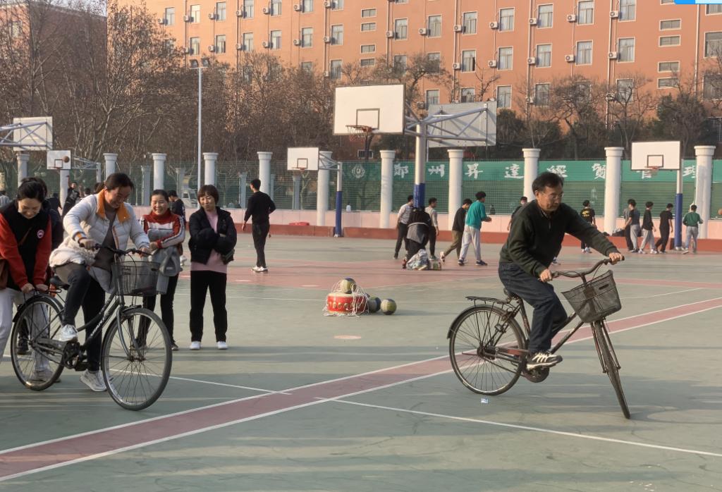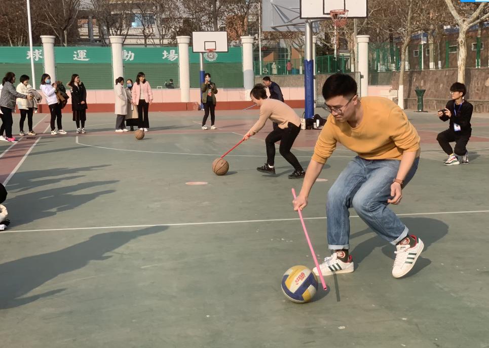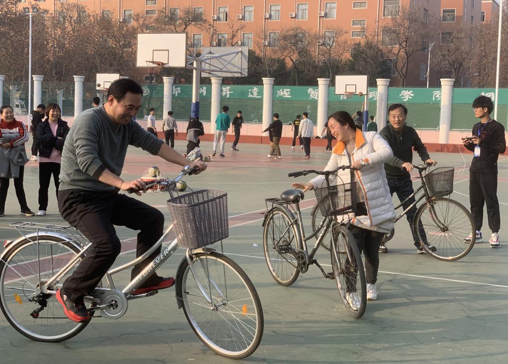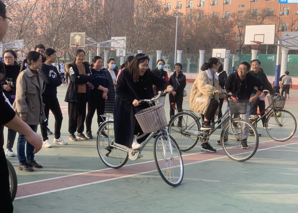 本次比赛以教研室为单位,基础部党总支书记兼分工会主席张志银同志负责组织,基础部主任王莉莉教授、副主任焦争鸣教授及全体教职工同志均参与了各项赛事,活动分为趣味同心鼓颠球游戏、吹气球传纸杯接力比赛、“赶鸭子上路”趣味接力赛、单人赛慢骑自行车、4 VS 4 篮球友谊赛五项活动。