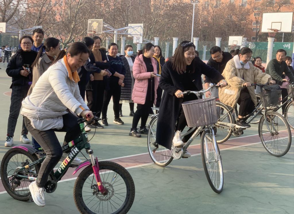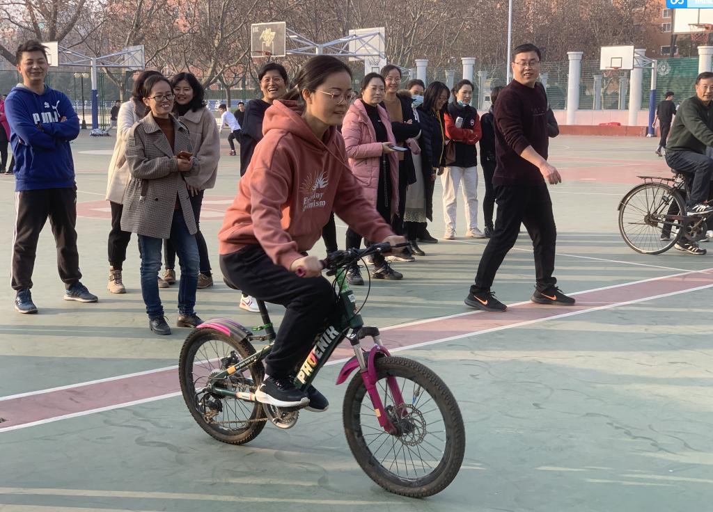 活动四:单人赛慢骑自行车,自行车慢赛不仅可以增强我们的体魄,锻炼身体的协调性,更能磨练我们坚忍不拔的意志,增强我们的耐心,展现出了老师们良好的精神风貌。
