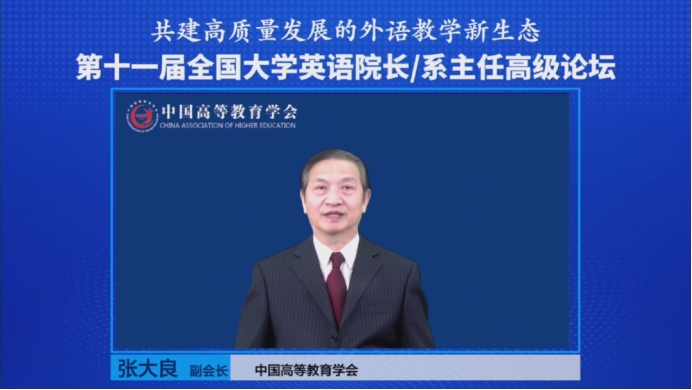 4月9日上午,论坛正式拉开帷幕。中国高等教育学会张大良副会长为开幕式录制视频致辞,上海外国语大学副董事长查明建教授担任主持嘉宾。张会长阐述了大学外语教育的必要性和重要性,并高度凝练了实现外语教育高质量发展的四个方向:紧贴国家战略发展需要、紧跟教育信息化时代走向、紧扣新时代教育评价改革要求、紧抓高素质教师队伍建设。外语教育大有可为,张会长鼓励广大外语教育工作者在推动外语教育高质量发展的进程中做出应有的贡献。