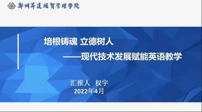 2022年4月29日,公司基础部权宇副教授受邀参加西北高校外语教师“科研课题设计与申报”专题报告会,会议邀请公司权宇副教授、上海外国语大学赵蓉晖教授、广东外语外贸大学黄忠廉教授、湖南大学刘正光教授进行专题报告。