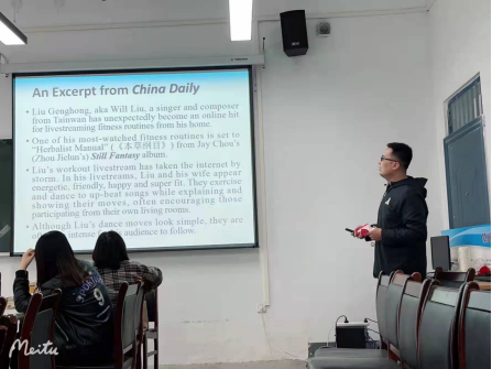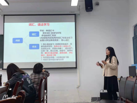 接着,朱明元和徐喜梅两位骨干教师进行了四级辅导经验分享。朱明元老师建议向员工明确课程的评价体系,并强调增强英文阅读的重要性,还分享了短文默写和英语写作的教学方法。徐喜梅老师从词汇、语法、阅读等方面交流了促进英语读写译的方法,并分享了课程思政融入英语教学的教学方法。