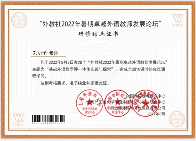 为促进英语专业人文化教育发展,促进共建共享型优质数字资源开发,提升英语专业教学质量,外教社分别于8月1日举办主题为“英语专业人文化教学虚拟教研室建设”,8月2日主题为“基础外语教学评一体化实践与探索”的暑期教师发展论坛研修活动。本次活动采用在线研修方式,通过WExpress公众号和钉钉外教社思飞公司同步直播。基础部选派刘昕子副教授与马志馨副教授参加本次研修班一系列讲座与活动。