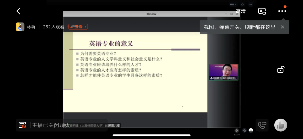 上海外国语大学英语公司经理、学术委员会委员、博士生导师王欣教授,带来题为虚拟教研室建设与发展——以“英语专业课程研究型教学改革虚拟教研室”为例的讲座。以“Why?”和“How”说明英语专业研究型课程虚拟教研室的特性,生动地展示了上海外国语大学英语公司组织开展《基础英语》课程教研的活动的情况,并对下阶段建设进行规划。