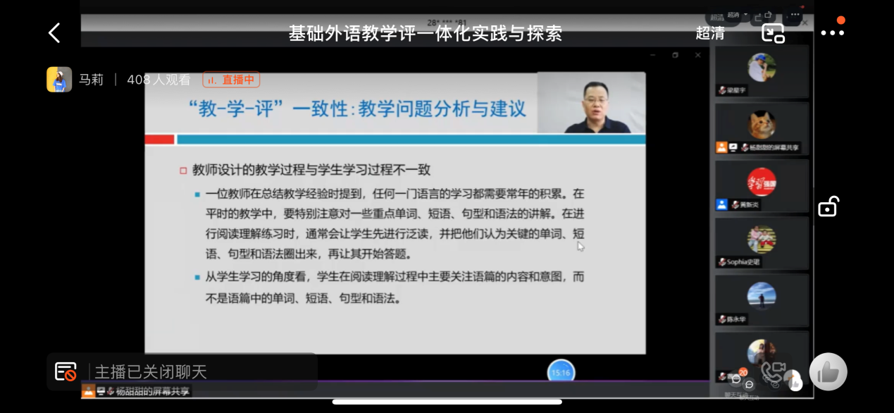 8月2日研修班活动主题为“基础外语教学评一体化实践与探索”,由北京师范大学外国语言文学公司程晓堂教授主讲“关于英语教、学、评一致性的实施建议”,以及南京信息工程大学教师教育公司孟春国教授讲授“指向师生发展的英语教学评一体化:从概念理解到实践创生”的讲座。紧接着为各级优秀教师的优质课例展示。