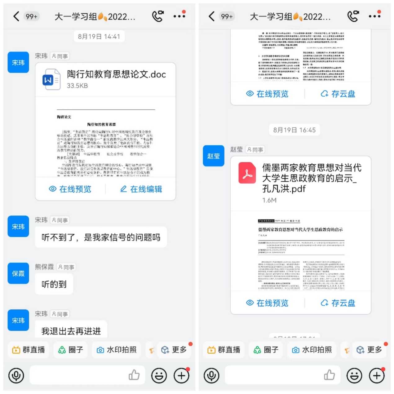 8月19日,大一教研组召开了第二次教育思想大讨论。主题是:主流教育思想研讨。每位教师从暑期所读论文中选择一篇有代表性的而且主题是主流教育思想的论文进行分享、讨论、学习。这次会议是通过钉钉视频会议召开的。