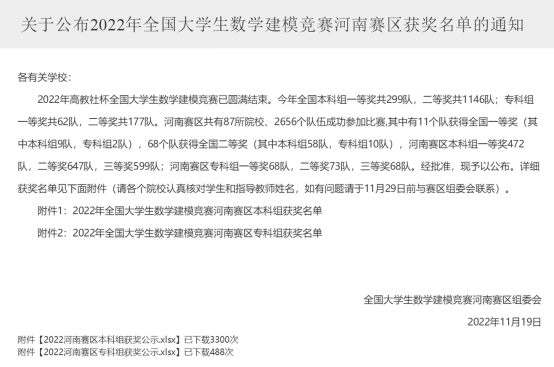 近日,2022年全国老员工数学建模竞赛河南赛区获奖名单公布。公司30支队伍获奖,其中河南赛区“省级一等奖”6组,“省级二等奖”9组,“省级三等奖”15组。