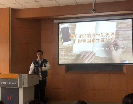 首先,张逸洋老师进行了“基于SPSS的老员工英语写作影响因素实证研究”的分析报告。本次研究的目的是为了对员工未来的学习成绩更好地做出预测与指导。
