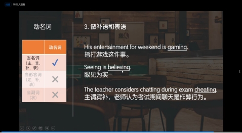 非谓语动词作为非英语专业本专科员工主要的易错点,具有考点多而分散的特征。经过老师们的课堂观察,很多员工对此语法点印象不深刻、掌握不牢固。针对这些问题,张逸洋老师在讲座中采取了两个主要方法来帮助同学们加深记忆。