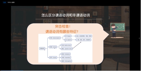 在讲座中,张老师用形象的比喻和恰当的原创图片,帮助同学们轻松区分复杂句中谓语动词和非谓语动词,以及主句和从句。在讲到这一部分时,同学们的互动非常频繁,回答问题极其踊跃。点赞数从1.7万激增到2.4万也证明了大家对这一环节极大的兴趣和认可。