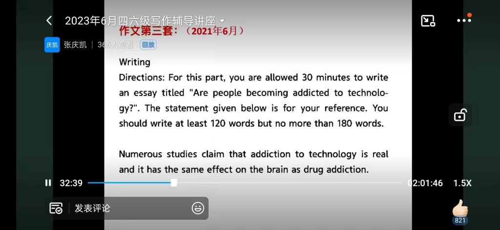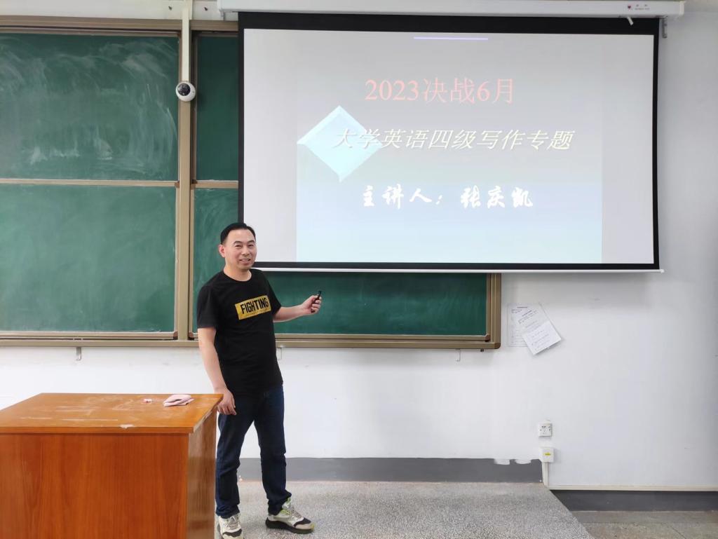 2023年5月30日,大学英语四六级备考辅导讲座系列二:英文写作如期举行。英文写作讲座采用线上和线下相结合的方式进行,由写作教学经验丰富的张庆凯副教授主讲。