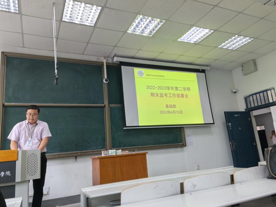 临近期末,为有序开展期末考试工作,按时完成各项教学任务,6月15日下午,基础部在综合楼-221召开了2022-2023学年第二学期期末考试工作部署会,会议由教学秘书张艳主持。基础部党总支书记张志银及全体教师参加了此次会议。