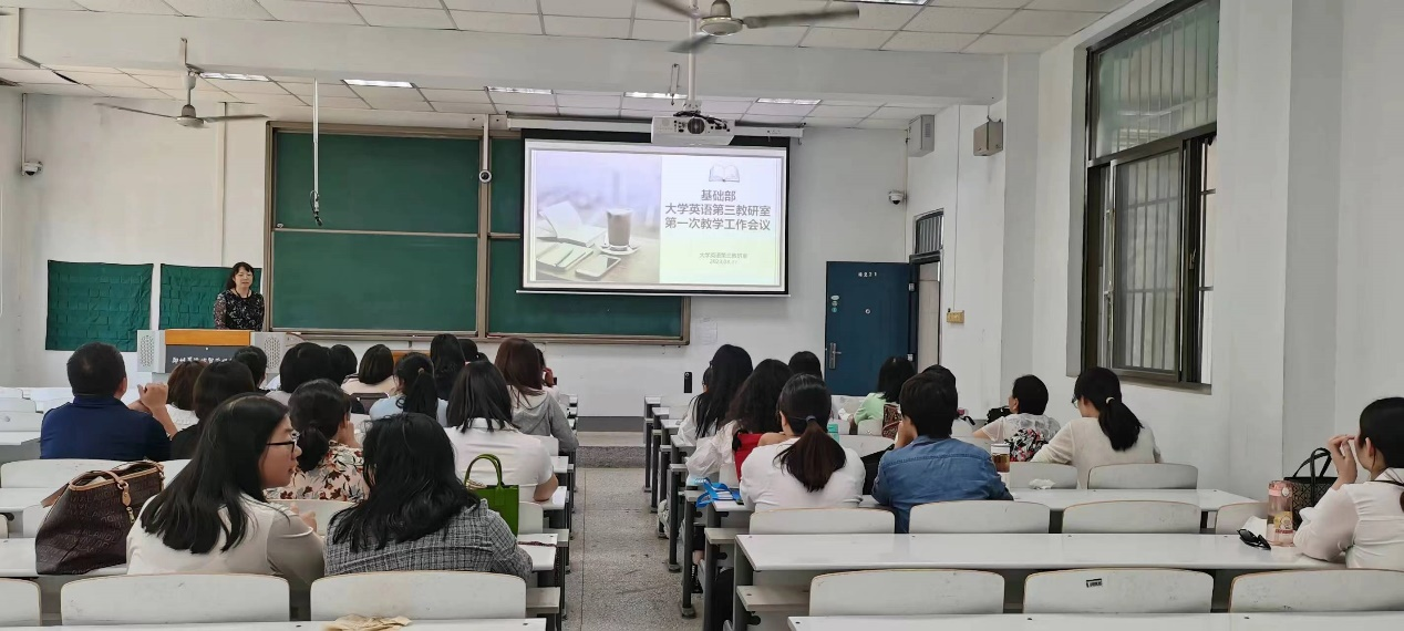 2023年8月31日上午,基础部大学英语第三教研室在综合楼221教室召开了本学期第一次教学工作会议。教研室主任宋玮副教授主持会议,第三教研室全体教师参加了会议。